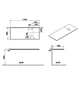 Столешница VITRA Origin 65732 Стекло 48х120,5см чёрный - купить в интернет-магазине Орегон с доставкой в регионы Крыма.