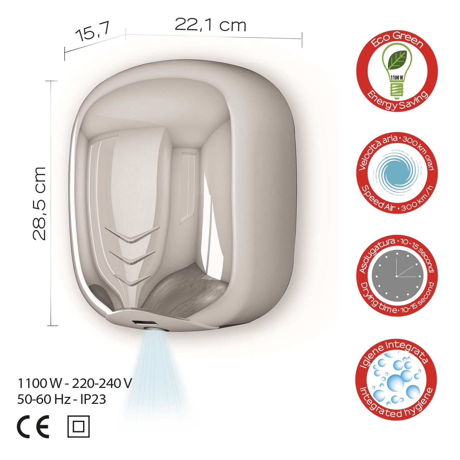 Сушилка Gedy Bora 2454(13) - это современная эргономичная модель для быстрой, комфортной и бесконтактной сушки рук после мытья. Использование электрической сушилки исключает передачу инфекции через полотенце или распространение бактерий в случае использования одноразовых салфеток, а также поможет существенно сэкономить на закупке расходных материалов для гигиены. Страна производителя: Италия. Вы можете купить Сушилка для рук Gedy Bora 2454(13) в интернет-магазине "ОРЕГОН" с бесплатной доставкой по всему Крыму или забрать товар самостоятельно в любом из наших магазинов в Ялте, Севастополе и Симферополе.