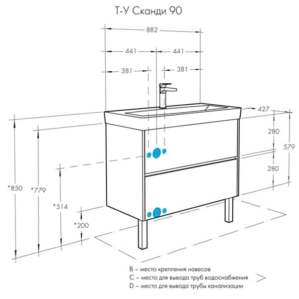 Тумба под раковину напольная Акватон Сканди 1A251901SD010 43х88,2х59,1см - купить в интернет-магазине Орегон с доставкой в регионы Крыма.