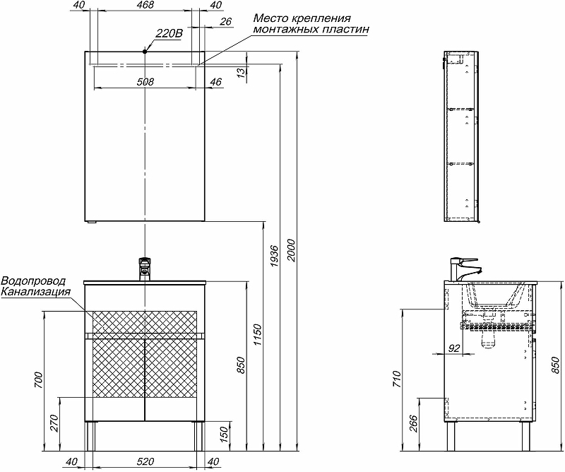 Тумба под раковину напольная AQUANET Алвита New 277546 46х60х83,4см - купить в интернет-магазине Орегон с доставкой в регионы Крыма.