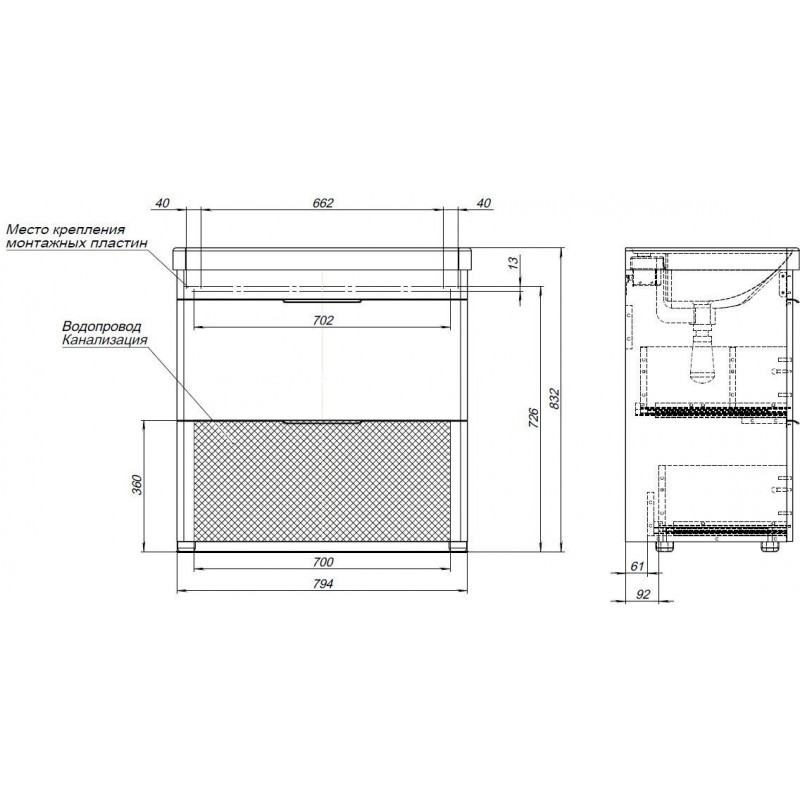 Тумба под раковину напольная AQUANET Ирис new 310154 48х81,5х83,2см - купить в интернет-магазине Орегон с доставкой в регионы Крыма.