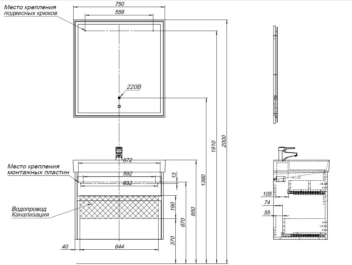 Монтаж Напольный~Подвесной