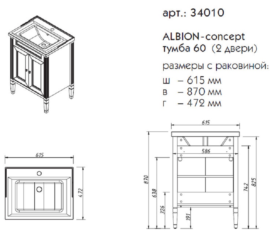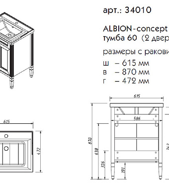 Тумба под раковину напольная CAPRIGO ALBION CONCEPT 34010-TP813 47х87х61,5см - купить в интернет-магазине Орегон с доставкой в регионы Крыма.