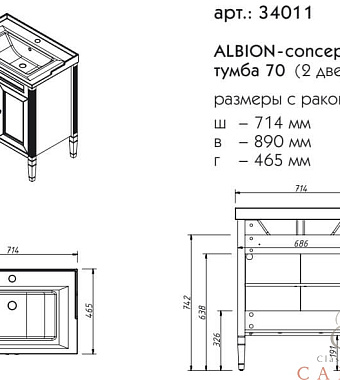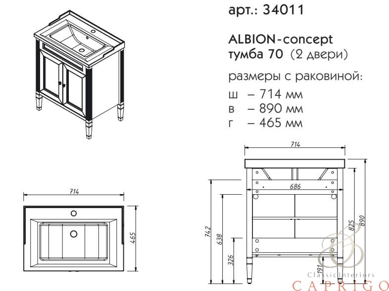 Тумба под раковину напольная CAPRIGO ALBION CONCEPT 34011-TP817 46х89х71,4см - купить в интернет-магазине Орегон с доставкой в регионы Крыма.