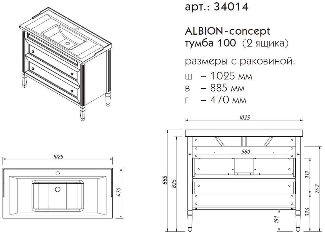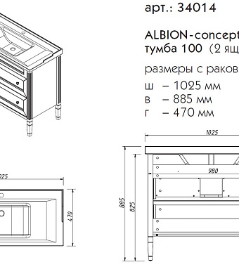 Тумба под раковину напольная CAPRIGO ALBION CONCEPT 34014-TP811 47х88,5х102,5см - купить в интернет-магазине Орегон с доставкой в регионы Крыма.