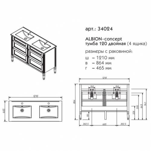 Тумба под раковину напольная CAPRIGO ALBION CONCEPT 34024-ТК663 47х86,5х121см - купить в интернет-магазине Орегон с доставкой в регионы Крыма.