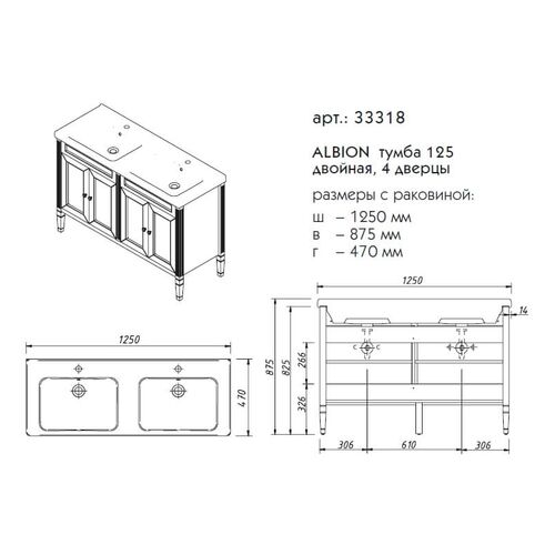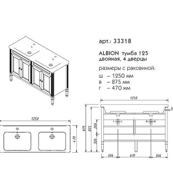Тумба под раковину напольная CAPRIGO ALBION PROMO 33318-В002 47х87,5х125см - купить в интернет-магазине Орегон с доставкой в регионы Крыма.