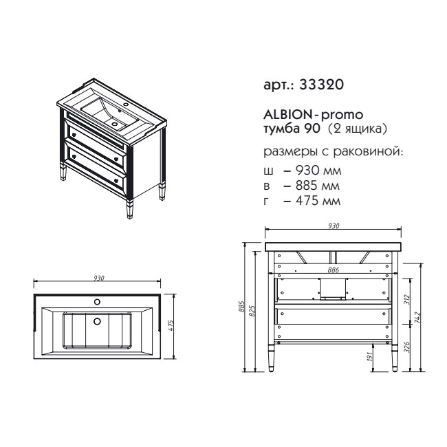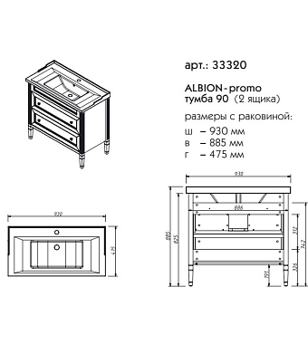Тумба под раковину напольная CAPRIGO ALBION PROMO 33320-В071 48х88,5х93см - купить в интернет-магазине Орегон с доставкой в регионы Крыма.