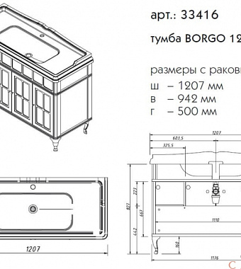 Тумба под раковину напольная CAPRIGO BORGO 33416-B177 50х93,4х120,7см - купить в интернет-магазине Орегон с доставкой в регионы Крыма.