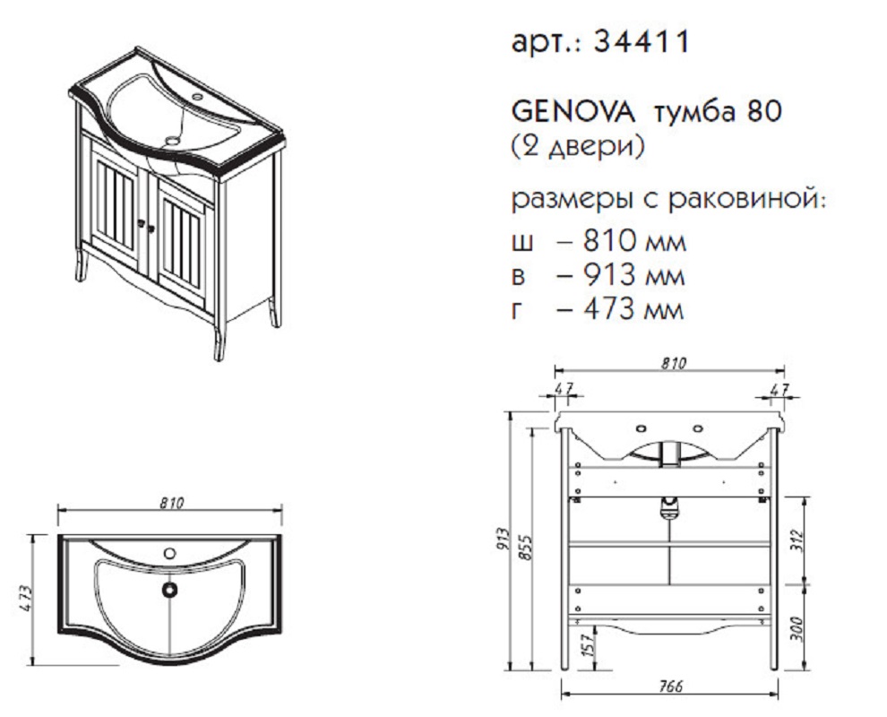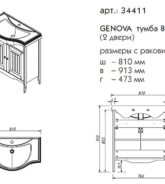 Тумба под раковину напольная CAPRIGO GENOVA 34411-TK663 47х91,3х81см - купить в интернет-магазине Орегон с доставкой в регионы Крыма.