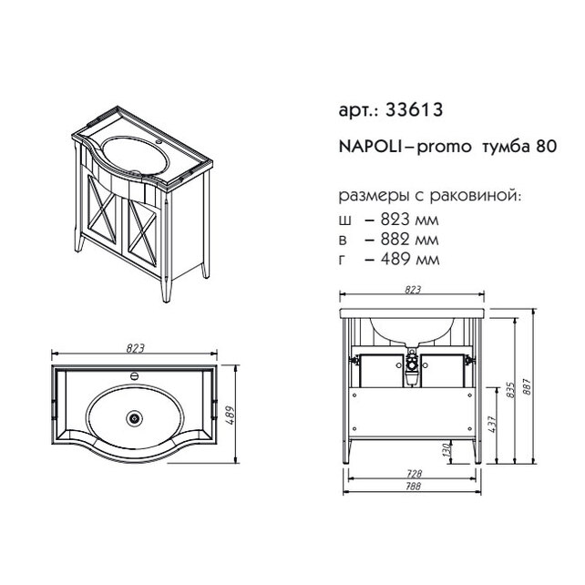 Тумба под раковину напольная CAPRIGO NAPOLI PROMO 33613-B168 49х86,7х82,3см - купить в интернет-магазине Орегон с доставкой в регионы Крыма.