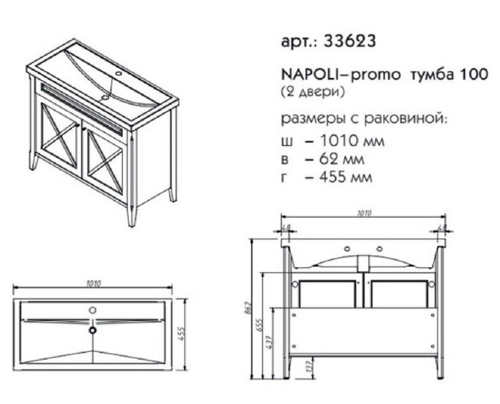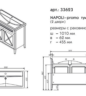 Тумба под раковину напольная CAPRIGO NAPOLI PROMO 33623-B163 46х86,2х101см - купить в интернет-магазине Орегон с доставкой в регионы Крыма.