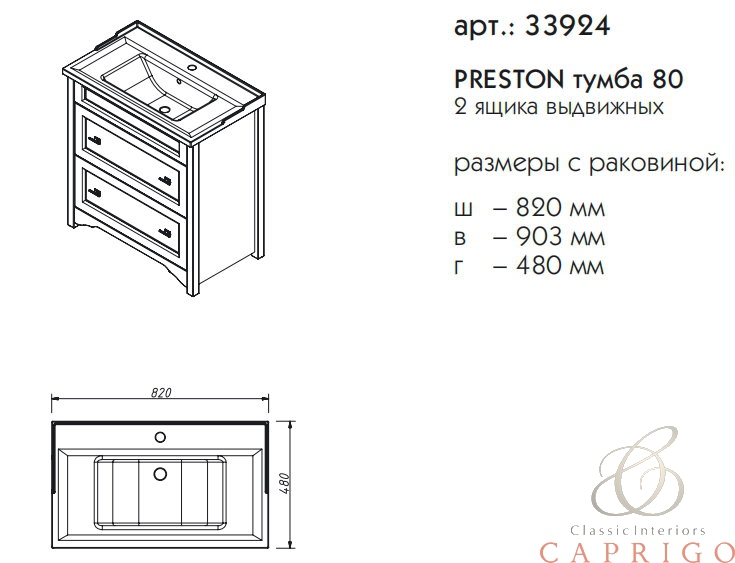 Тумба под раковину напольная CAPRIGO PRESTON 33924-TP811 48х90,3х82см - купить в интернет-магазине Орегон с доставкой в регионы Крыма.