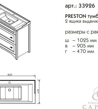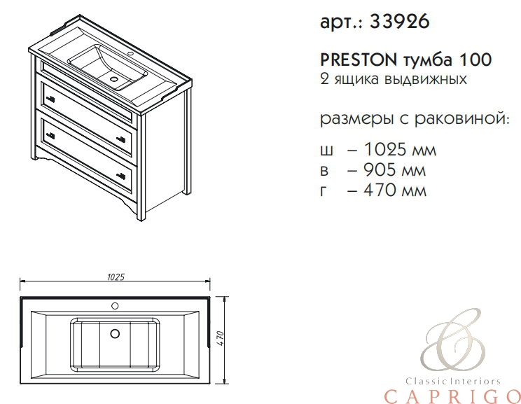 Тумба под раковину напольная CAPRIGO PRESTON 33926-TP813 47х90,5х102,5см - купить в интернет-магазине Орегон с доставкой в регионы Крыма.