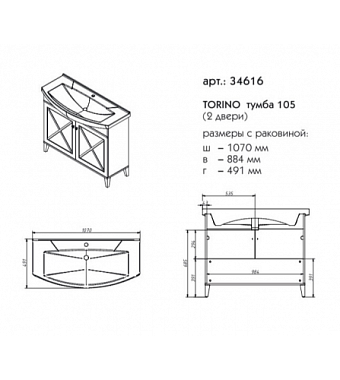 Тумба под раковину напольная CAPRIGO TORINO 34616-TP813 49х90,1х107см - купить в интернет-магазине Орегон с доставкой в регионы Крыма.