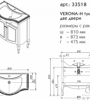 Тумба под раковину напольная CAPRIGO VERONA 33518-TK667 47х87,3х81см - купить в интернет-магазине Орегон с доставкой в регионы Крыма.