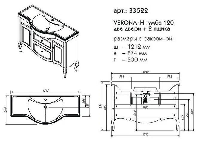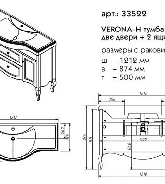 Тумба под раковину напольная CAPRIGO VERONA 33522-TP811 50х87,4х121,2см - купить в интернет-магазине Орегон с доставкой в регионы Крыма.