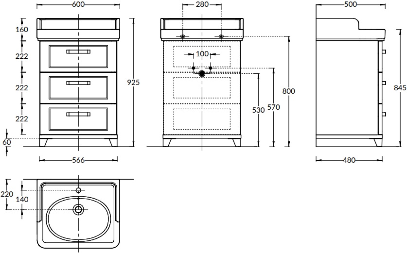 Тумба под раковину напольная KERAMA MARAZZI Pompei PO.N.60.3.WHT 50х60х92,5см - купить в интернет-магазине Орегон с доставкой в регионы Крыма.