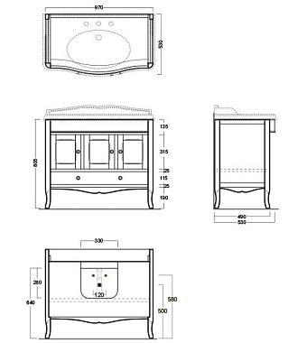 Тумба под раковину напольная SIMAS Arcade ARMC105 bi/cr 53х97х80,5см - купить в интернет-магазине Орегон с доставкой в регионы Крыма.