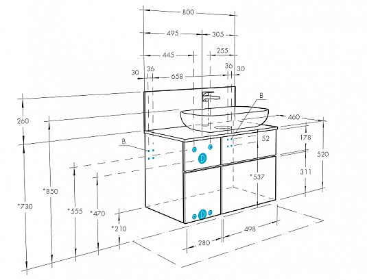 Тумба под раковину подвесная Акватон Мишель 1A244501MIX30 46х80х52см
