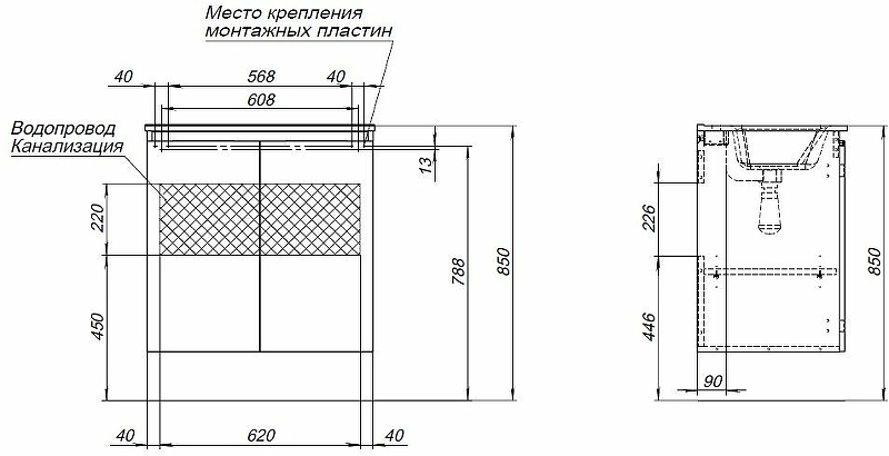 Тумба под раковину подвесная AQUANET Алвита New 303906 46х70х68,4см - купить в интернет-магазине Орегон с доставкой в регионы Крыма.