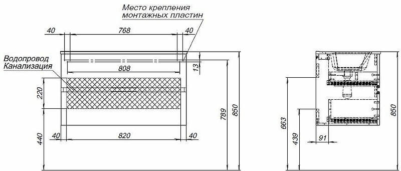 Тумба под раковину подвесная AQUANET Алвита New 303921 46х90х51,3см - купить в интернет-магазине Орегон с доставкой в регионы Крыма.