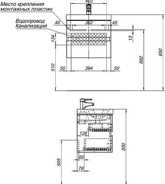 Тумба под раковину подвесная AQUANET Беркли 302347 39х49,4х42см - купить в интернет-магазине Орегон с доставкой в регионы Крыма.
