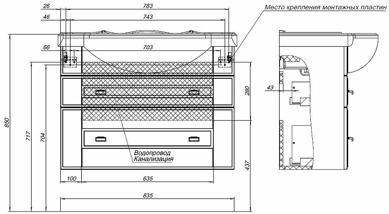 Тумба под раковину подвесная AQUANET Рондо 304289 33х85х60,2см - купить в интернет-магазине Орегон с доставкой в регионы Крыма.
