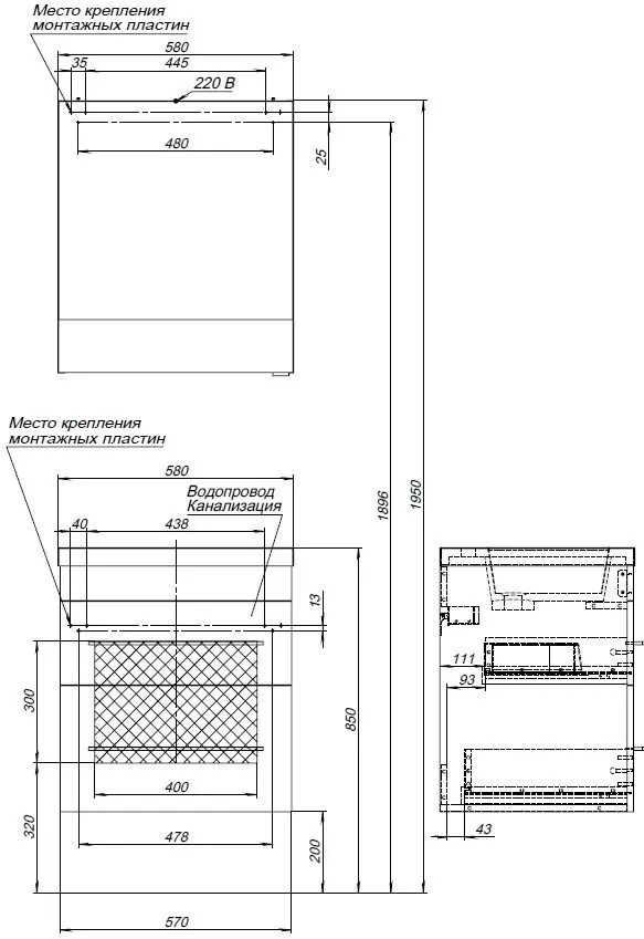 «Тумба под раковину подвесная AQUANET Верона 304536 48х57х60,5см» в Ялте и Крыму