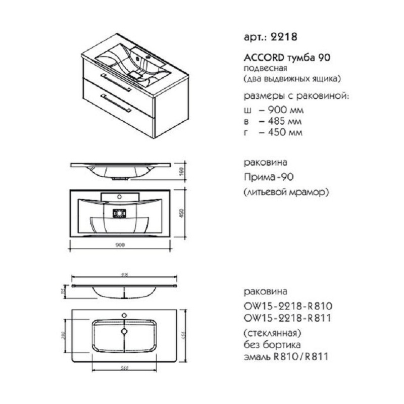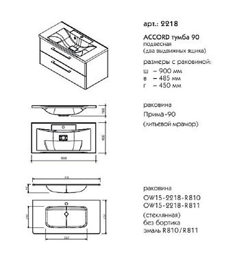 Тумба под раковину подвесная CAPRIGO ACCORD 2218-TP810 45х90х48,5см - купить в интернет-магазине Орегон с доставкой в регионы Крыма.