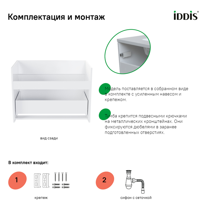 Тумба под раковину подвесная IDDIS Esper ESP80W0i95 45х76,3х55см - купить в интернет-магазине Орегон с доставкой в регионы Крыма.