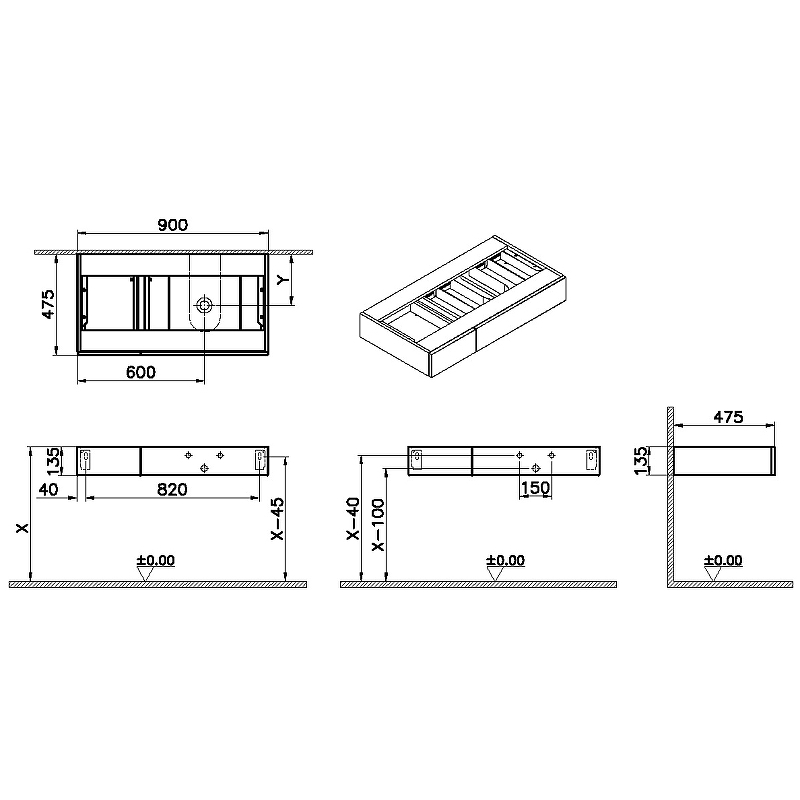 Тумба под раковину подвесная VITRA Origin 65678 47,5х90х13,5см