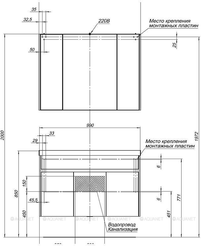 Тумба с раковиной AQUANET Латина 212837 45х100х65см - купить в интернет-магазине Орегон с доставкой в регионы Крыма.