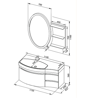 Тумба с раковиной AQUANET Опера 212990 42,7х115х56см