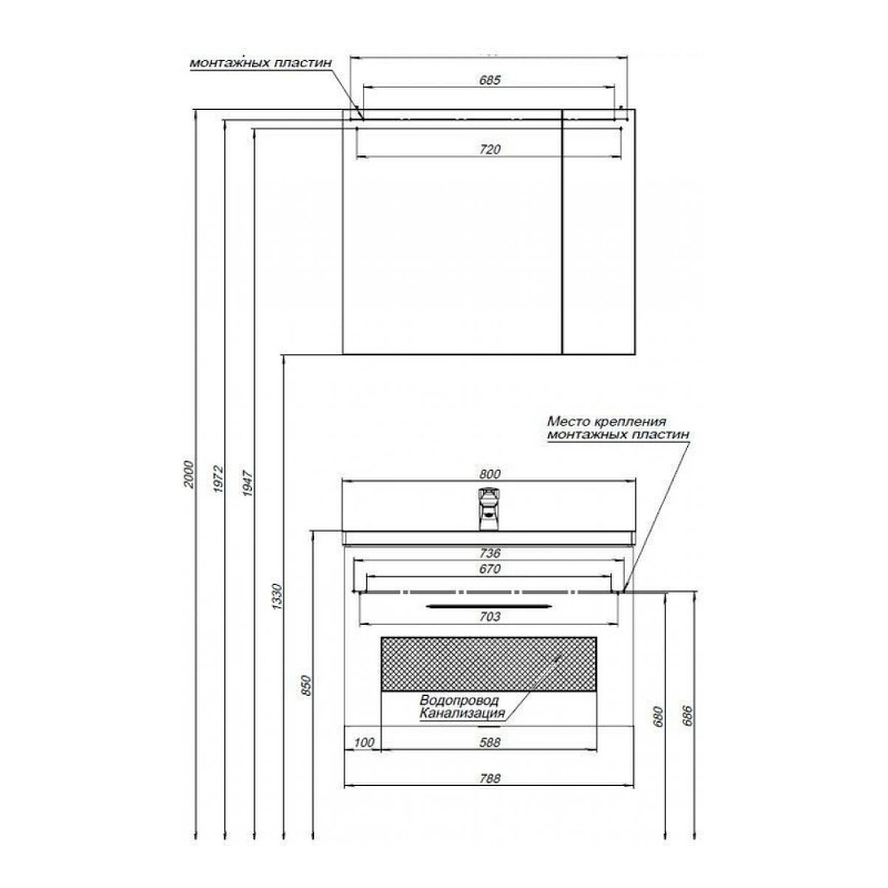 «Тумба с раковиной AQUANET Порто 212577 44,3х80х53,3см» в Ялте и Крыму