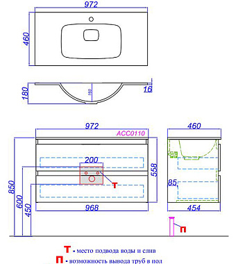 Тумба с раковиной AQWELLA Accent ACC0110DZ 46х97,5х56см - купить в интернет-магазине Орегон с доставкой в регионы Крыма.