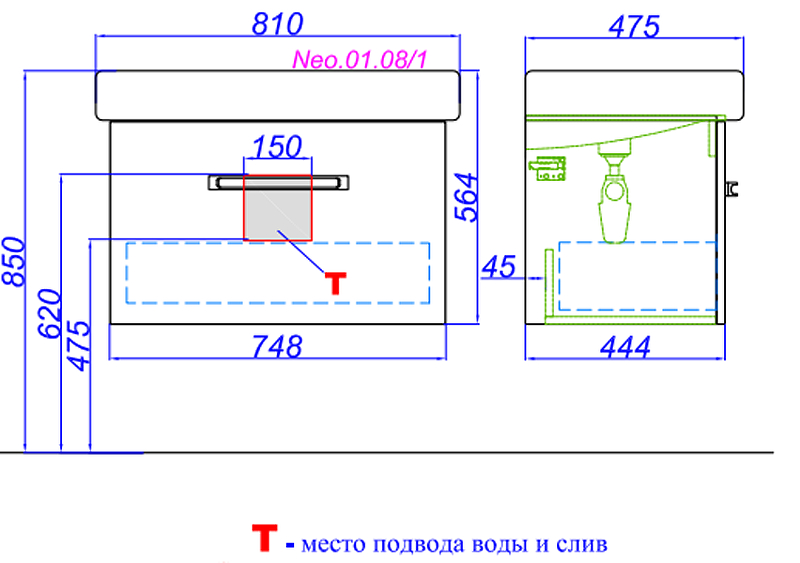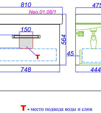 Тумба с раковиной AQWELLA Neo NEO01081 47,5х80х54,5см