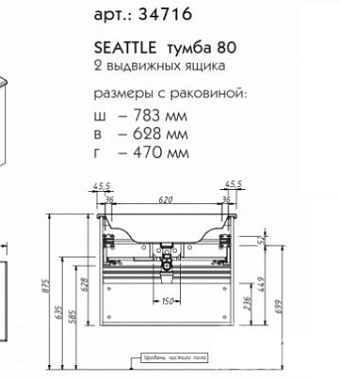 Тумба с раковиной CAPRIGO SEATTLE 34716-Дуб СОМЕРО 47х78,3х62,8см - купить в интернет-магазине Орегон с доставкой в регионы Крыма.