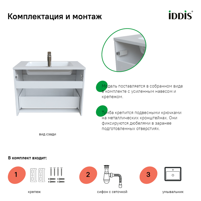 Тумба с раковиной IDDIS Esper ESP80W0i95K 45х76,3х55см - купить в интернет-магазине Орегон с доставкой в регионы Крыма.