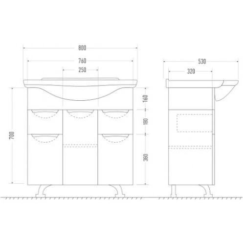 Тумба с раковиной MIRSANT Камилла УТ000004927 320х80х70см