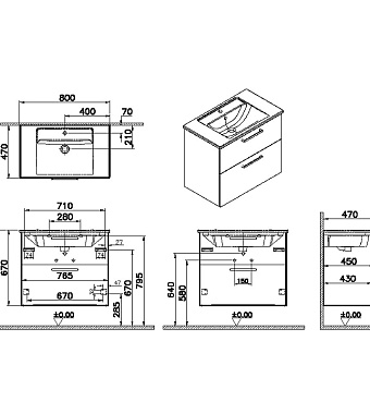 Тумба с раковиной VITRA Root 66306 47х80х67см