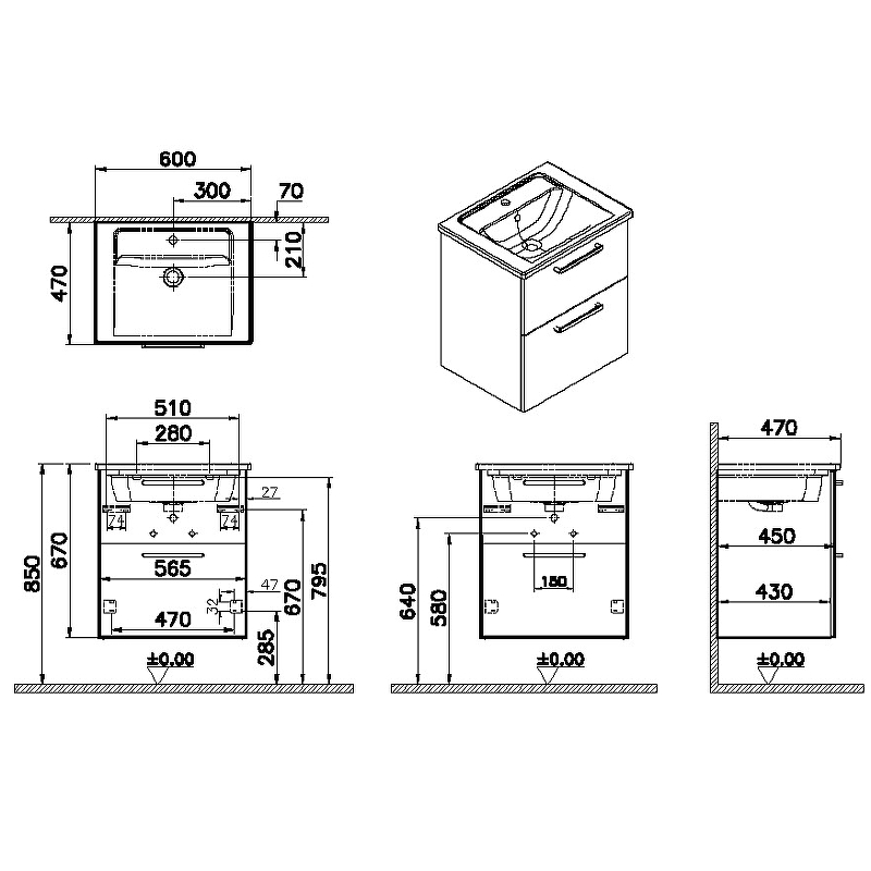 Тумба с раковиной VITRA Root 68270 47х60х67см