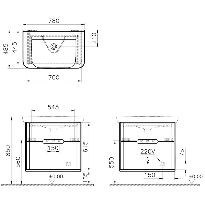 «Тумба с раковиной VITRA Sento 60836 49х78х67см» в Ялте и Крыму