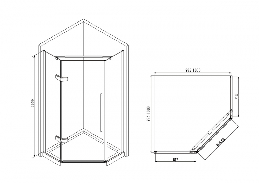 Угловое ограждение Abber Ewiges Wasser AG05100B 195х100см стекло прозрачное