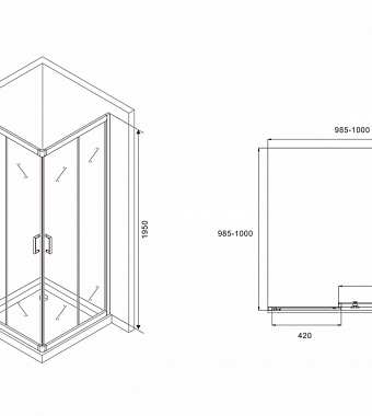 Угловое ограждение Abber Schwarzer Diamant AG02100B 195х100см стекло прозрачное - купить в интернет-магазине Орегон с доставкой в регионы Крыма.
