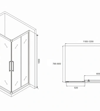 Угловое ограждение Abber Schwarzer Diamant AG02128BH 195х80см стекло прозрачное - купить в интернет-магазине Орегон с доставкой в регионы Крыма.