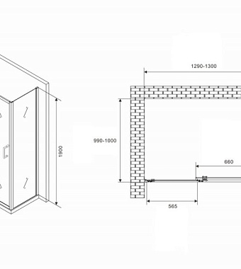 «Угловое ограждение Abber Schwarzer Diamant AG301305-S1005 190х100см стекло прозрачное» в Ялте и Крыму