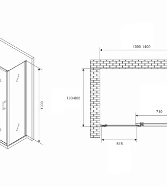 «Угловое ограждение Abber Schwarzer Diamant AG301405-S805 190х80см стекло прозрачное» в Ялте и Крыму