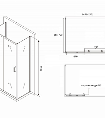 «Угловое ограждение Abber Schwarzer Diamant AG30150B-S70B-S70B 195х70см стекло прозрачное» в Ялте и Крыму