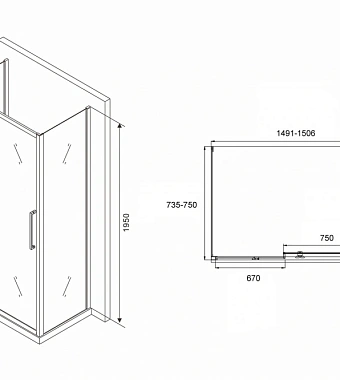 «Угловое ограждение Abber Schwarzer Diamant AG30150H-S75-S75 195х75см стекло прозрачное» в Ялте и Крыму